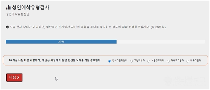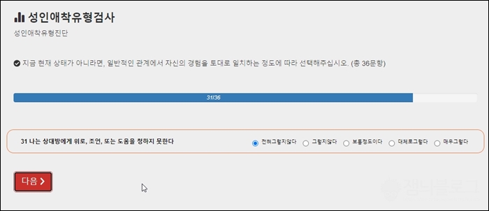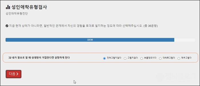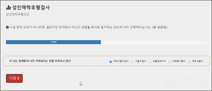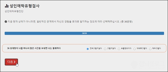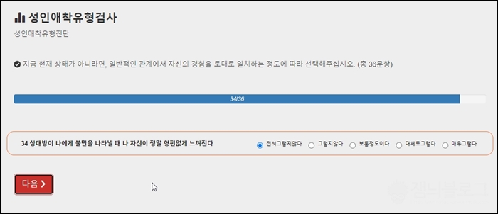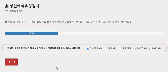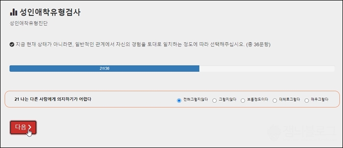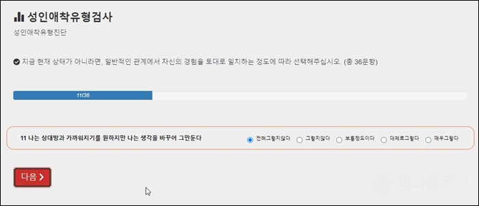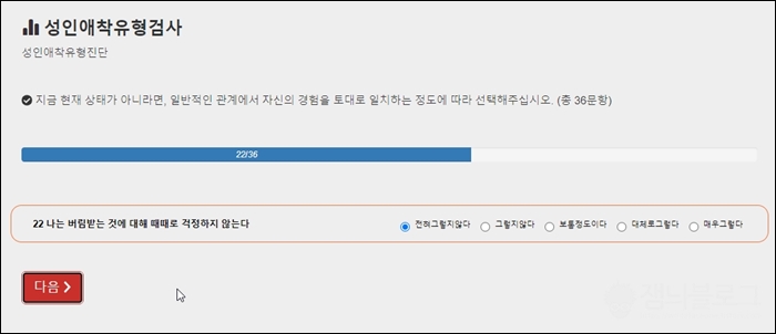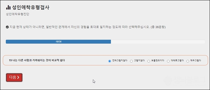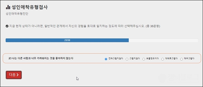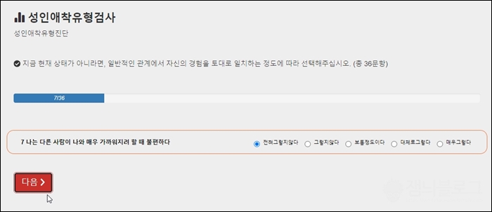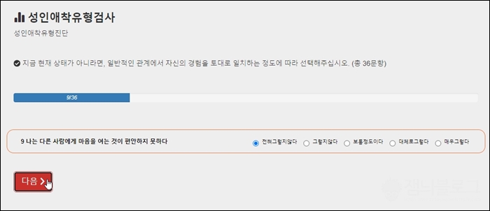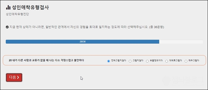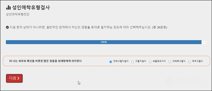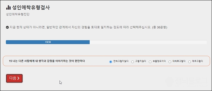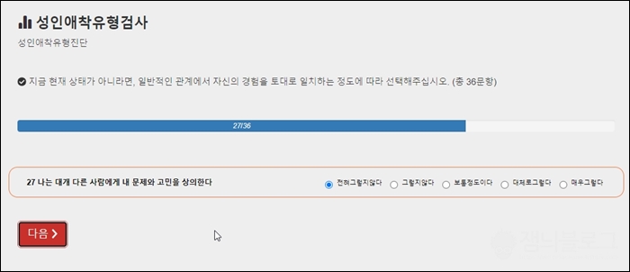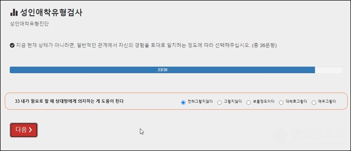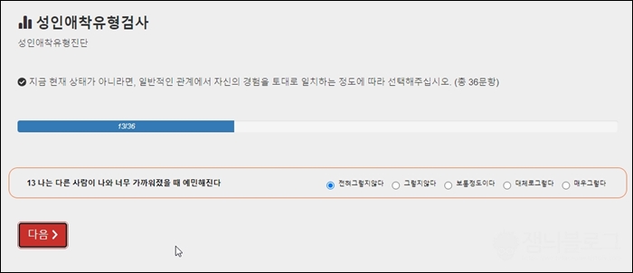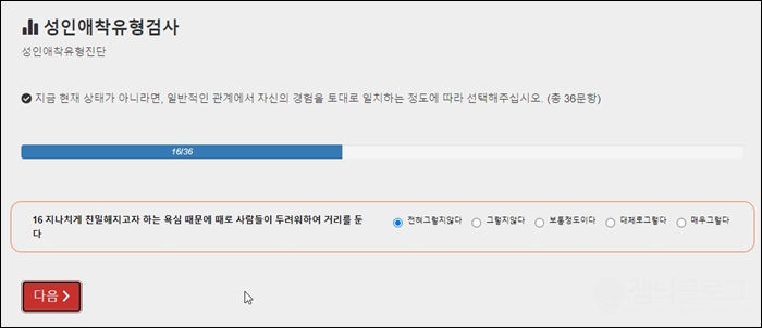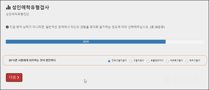 성인애착유형검사를 간편하게 할 수 있습니다.