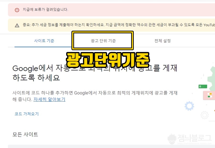 개요에서 [광고 단위 기준]을 클릭합니다.