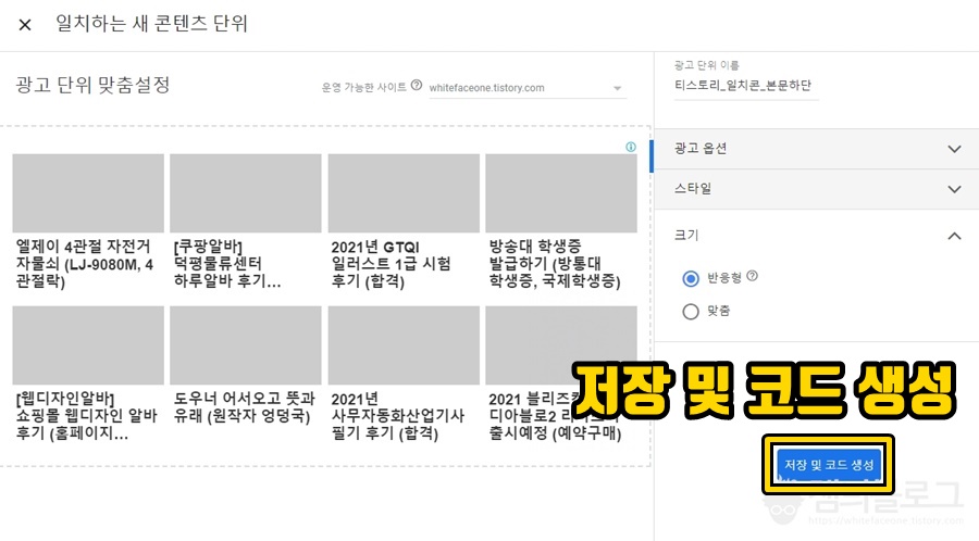 설정이 완료되었으면 [저장 및 코드 생성]을 클릭합니다.
