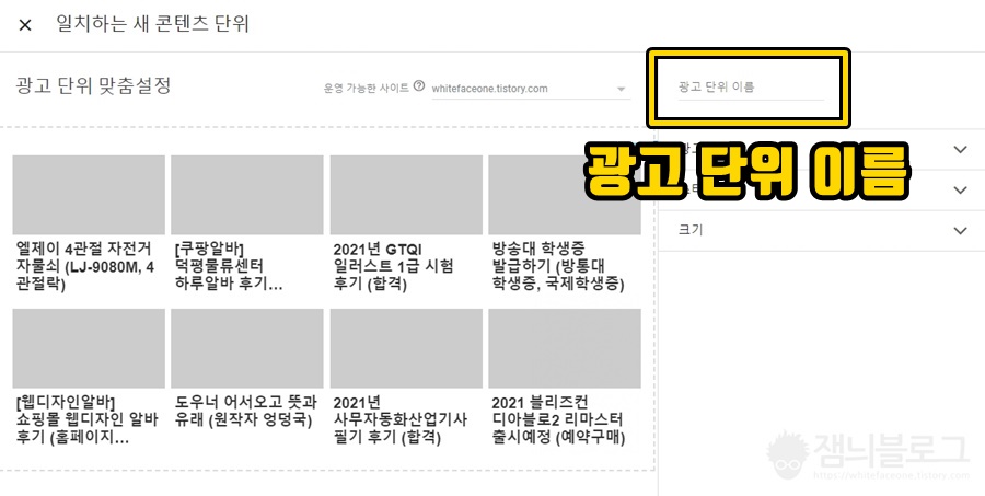 [광고 단위 이름]을 설정합니다. 그냥 본인이 알아보기 편한 것으로 이름을 붙이면 됩니다.