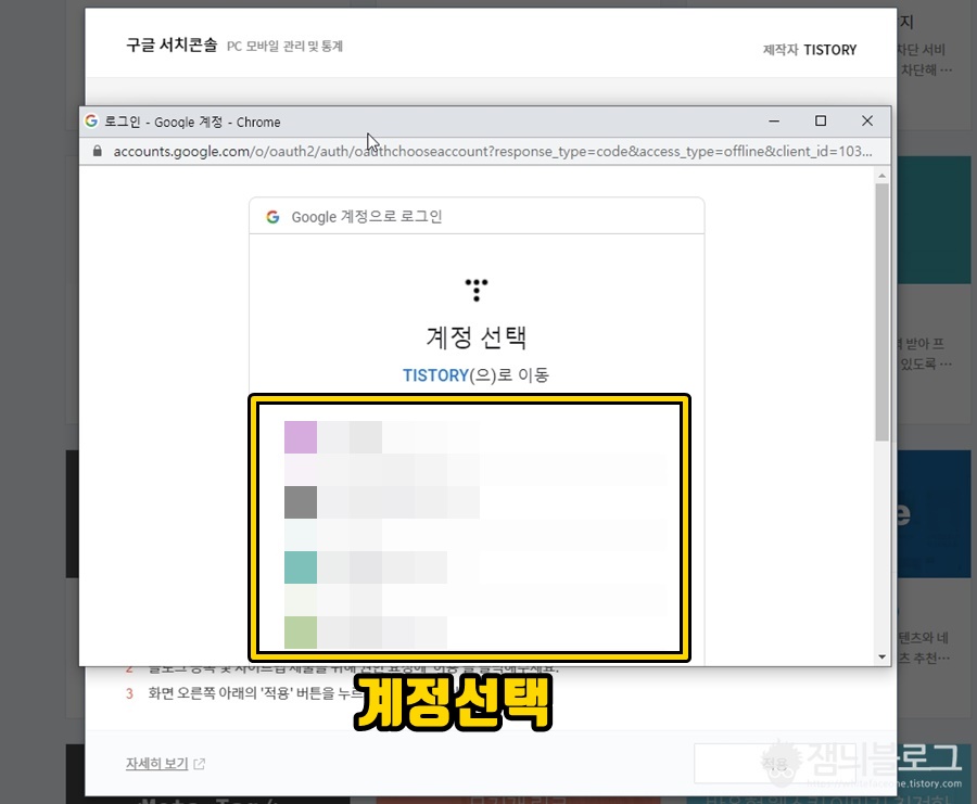 구글에 로그인합니다. 여러 계정을 로그인 중이라면 계정을 선택해줍니다.