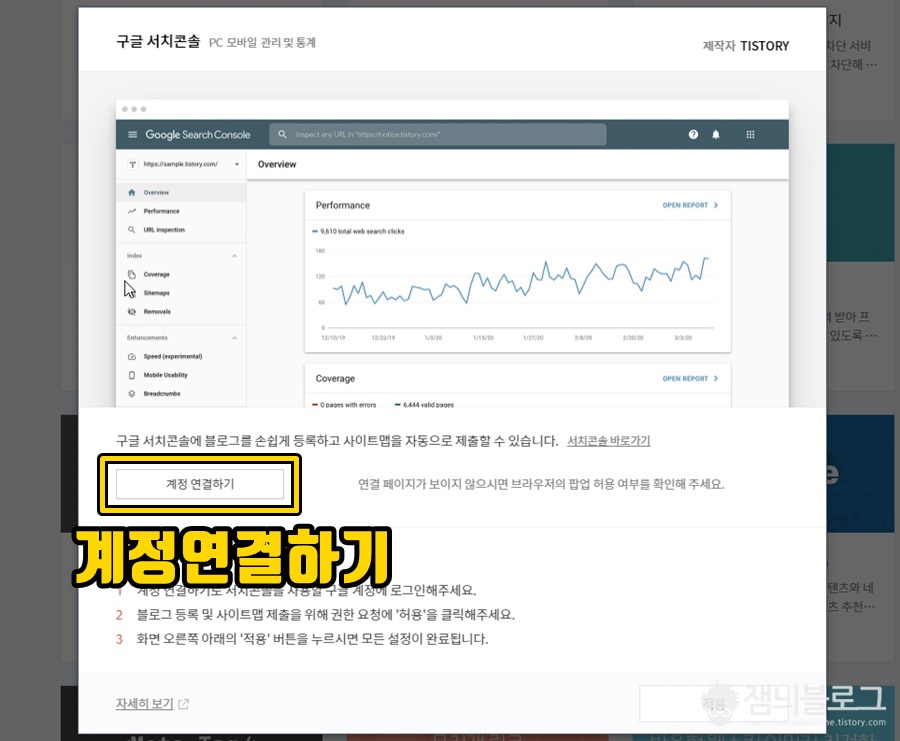 구글 서치콘솔에서 [계정 연결하기]를 클릭합니다.