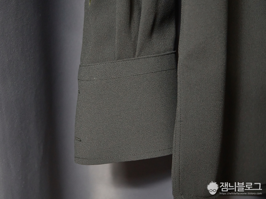 소매는 롱커프스입니다. 일반적인 소매보다 깁니다. 손등을 살짝 덮는 느낌을 낼 수 있습니다.