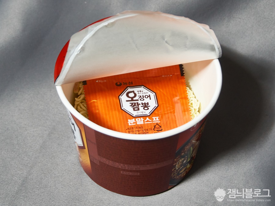 조리시간은 라면의 정석이죠 3분입니다. 스프중 오징어가 8.4% 들어가 있습니다. 가끔 먹다보면 졸깃한 오징어가 씹히기도 합니다.