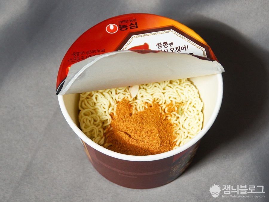 조리법은 그냥 분말스프 넣고 뜨거운물 붓고 3분 기다리면 됩니다. 컵라면은 면이 얇아서 봉지라면과는 다른 식감입니다.