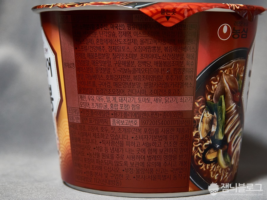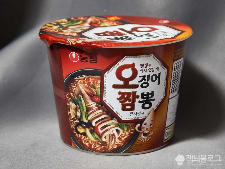 농심 오징어짬뽕 컵라면입니다. 봉지라면으로 많이 먹어봤는데 설거지도 귀찮고 해서 컵라면으로 구입했습니다. 특유의 해물향과 달짝지근한 국물이 괜찮아서 롱런하고 있습니다.