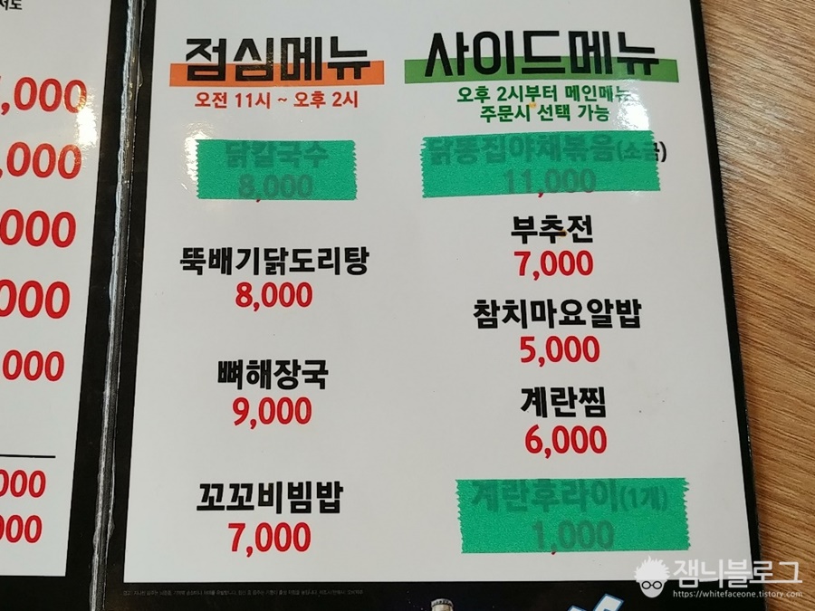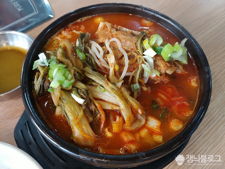 뼈해장국은 개인적으로 비추입니다. 국물맛이 깊지도 않고 짠맛과 매운맛만 있습니다. 고기의 양이 많은 것도 아니고 우거지는 괜찮았습니다. 아무래도 닭요리 전문점이라서 그런지 뼈해장국은 아닌가봅니다. 뚝배기닭도리탕을 먹은 회사 사람은 되게 괜찮다는 의견이었습니다. 닭한마리 감자탕에서는 닭 관련 요리를 주문하는 것을 추천드립니다.