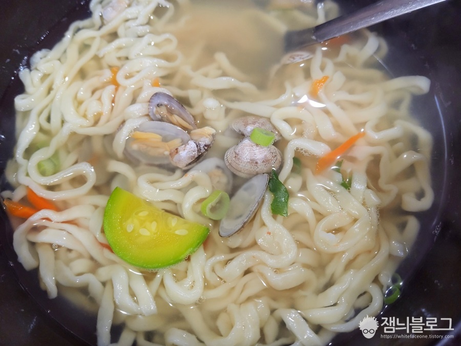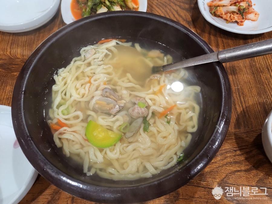 칼국수도 옹기에 나옵니다. 흰색 플라스틱 용기보다는 확실히 느낌있습니다. 바지락이 많이 들어있지는 않습니다. 면이 탱글하고 식감이 좋습니다.