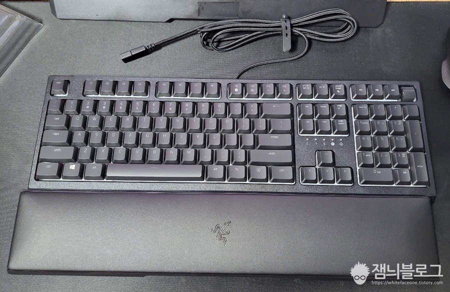 손목받침대도 제공됩니다. 이것때문에 이 키보드를 구매한 사람이 있을정도로 굉장히 깔끔한 모습입니다.