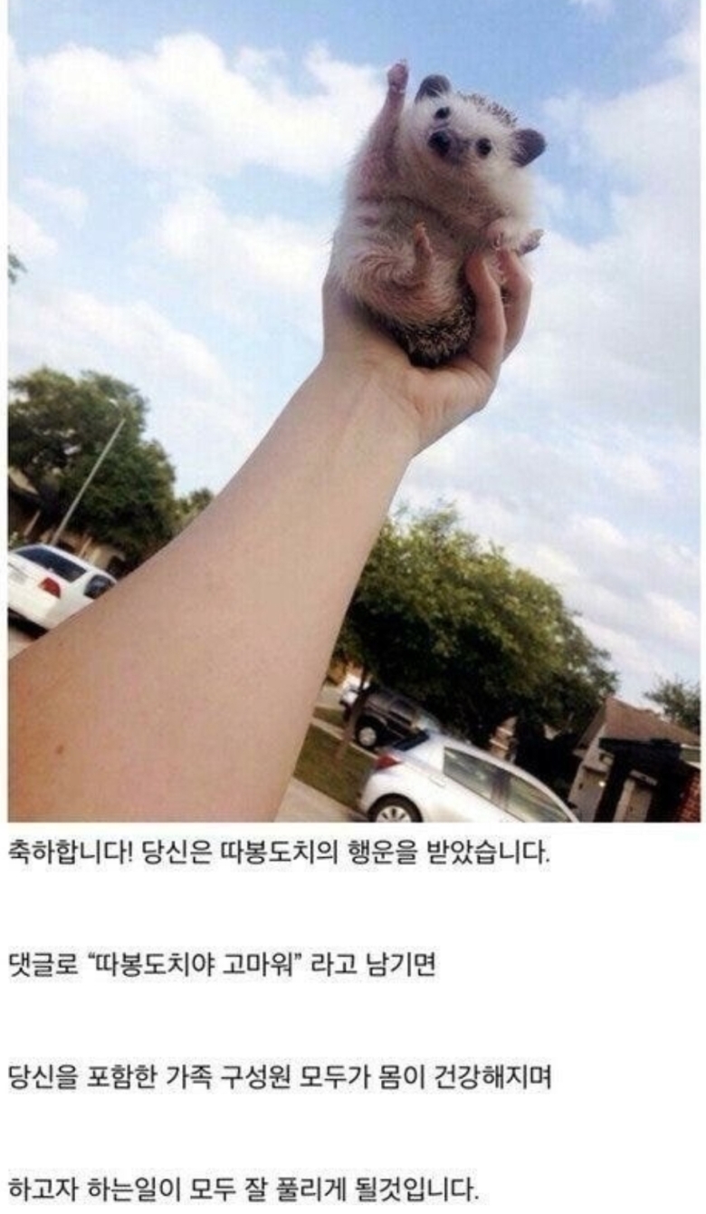 예전에 유행했던 '행운의 편지'와 비슷한 종류라고 볼 수 있습니다. 따봉도치 짤을 본 사람들은 댓글을 달고나서 다른 커뮤니티로 퍼뜨려 모두를 행복(?)하게 만들어버렸고 점점 인기를 얻게 되었습니다.