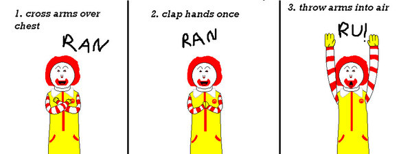 질문 자막을 보여주면 로날드 맥도날드가 대답하는 형식
