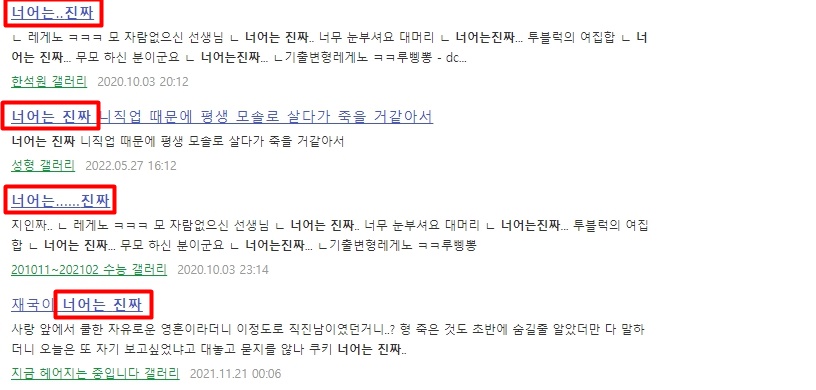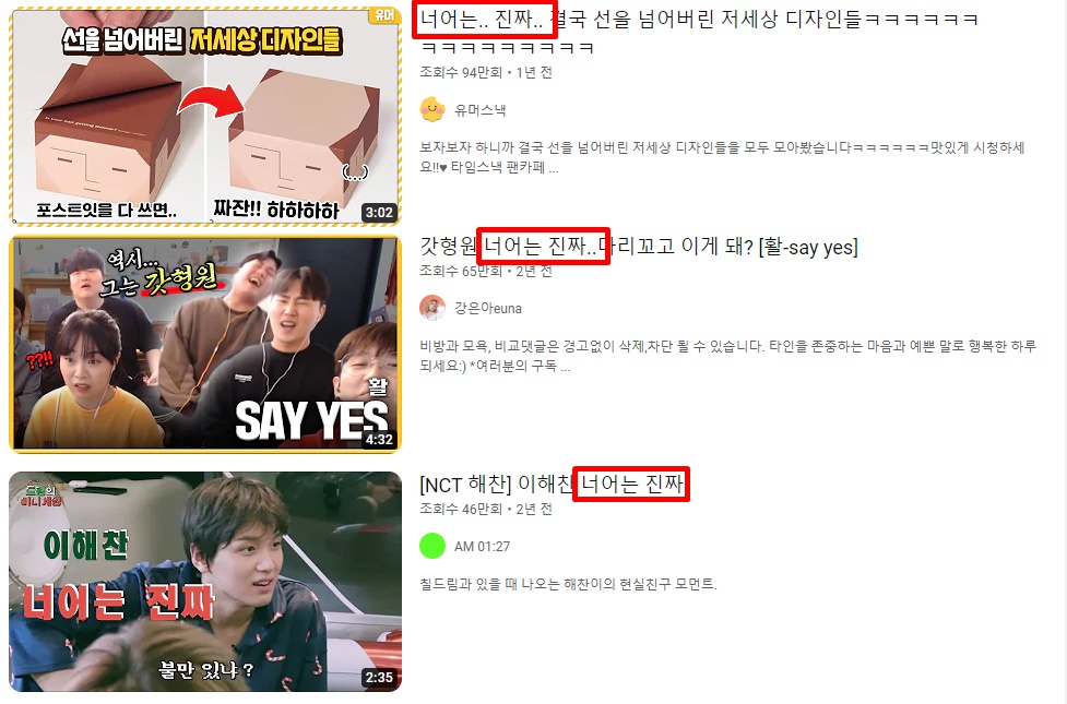 한 유저가 어떤 상황에 대해서 일반적이지 않은 행동을 했을 때, 그에 대한 반응으로 '너어는.. 진짜..'라고 하며 말끝을 흐리면서 할말하않식으로 이야기를 하는 겁니다. 예를들어 수능 갤러리에서 수능시험 망쳐서 우울하다는 내용의 게시글이 올라왔고 거기에다 대고 누군가 '그럼 1년 더하겠네 꺄륵~'이라고 했다면 다른 사람들이 그 모습을 보고 '너어는.. 진짜..'라는 반응을 보이게 되는 상황입니다.