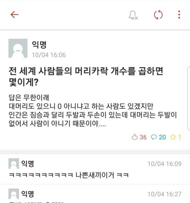 나중에는 의미가 확장되어 창의성에 대한 감탄은 빠지고 선을 넘은 상대에게 한심함을 드러내는 의미로 사용되기도 했습니다.