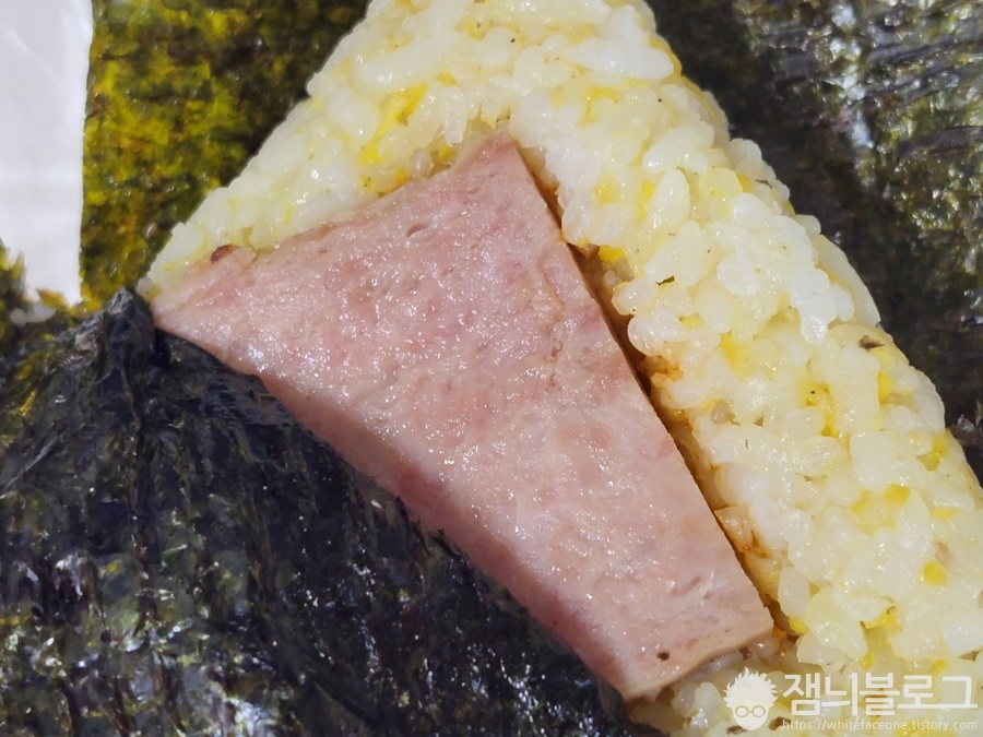 맛은 별로입니다. 밥에 계란이 섞여있고 햄도 크게 들어있지만 기본적으로 삼각김밥에 기대할만한 맛이 안납니다. 본인이 CU삼김에 길들여진 것일 수도 있지만 단순비교를 해봐도 밥알의 느낌이나 재료의 조화가 다소 아쉽습니다.