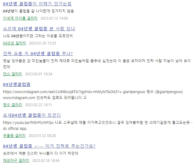 최초로 시작한 콘텐츠에 대해서는 확인이 안 되나 어떻게 만들어졌는지 정황을 바탕으로 추측해 봤습니다. 04년생 클럽춤이라는 이름에 맞게 이제 막 20세가 되면서 갓 성인의 문턱을 넘은 사람들이 클럽에 처음에 갔을 때 관련 경험이 없다 보니 춤은 추되 약간은 소극적이고 쑥스러워 상황의 포인트를 살렸다고 볼 수 있습니다. 04년생 클럽춤의 핵심이 되는 손가락을 교차시켜서 눈가로 가져가는 동작은 뭔가 미성년자에게는 허락되는 않는 성인의 영역을 마주했을 때 미성년자 티가 남아있어 눈을 가려야 하지만 갓 성인이 되었기에 그 사이로 성인의 영역을 보면서 알 거 다 알게 되고 이후에는 리듬도 타면서 즐기게 되는 모양을 나타낸 것으로 보입니다.
