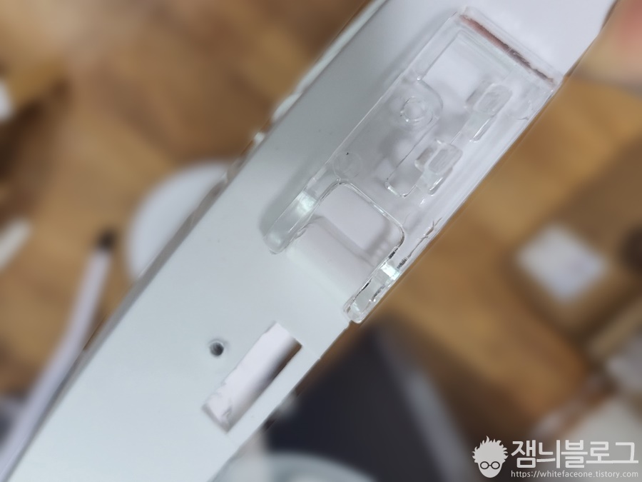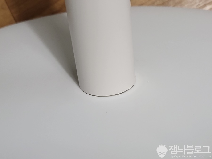 받침 앞뒤입니다. 앞면은 깔끔합니다. 샤오미 느낌도 나고 올화이트라서 매끈한 느낌이 있습니다. 뒷면은 별로입니다. 새 제품이지만 엄청 너덜거리고 더러운 느낌입니다. 받침 자체는 나름 묵직해서 헤드가 넘어갈 것 같지는 않습니다.