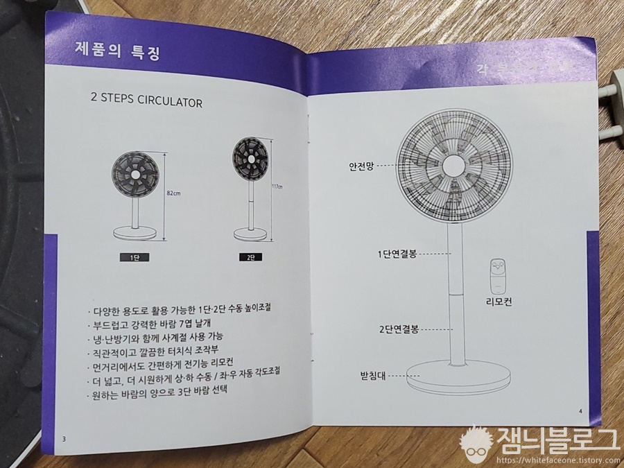 설명서의 그림을 참고하면 좀 더 쉽게 조립할 수 있기는 합니다. 선풍기 기둥 조절은 수동으로 해야 해서 좀 아쉽지만 막상 선풍기 높이조절을 써본 적이 없습니다. 여태 그냥 각도만 올려도 충분했습니다. 2년 보증이라는데 그래도 2년간은 걱정 없이 쓸 수 있겠습니다.