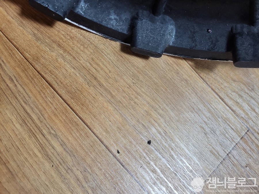 받침대 바닥에서 가루 엄청 떨어집니다. 물티슈로 닦아도 별로고 그냥 진짜 무슨 밖에서 구르다 온 타이어느낌입니다. 어차피 안 보이는 부분이긴 하지만 너덜거리는 건 그러려니 해도 가루 날리는 건 좀 별로입니다.