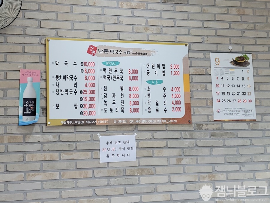 신북읍은 한적한 동네입니다. 큰길을 따라가다 보면 남촌막국수를 찾을 수 있습니다. 추석당일에는 휴일이었고 다음날에는 문을 열었습니다.
