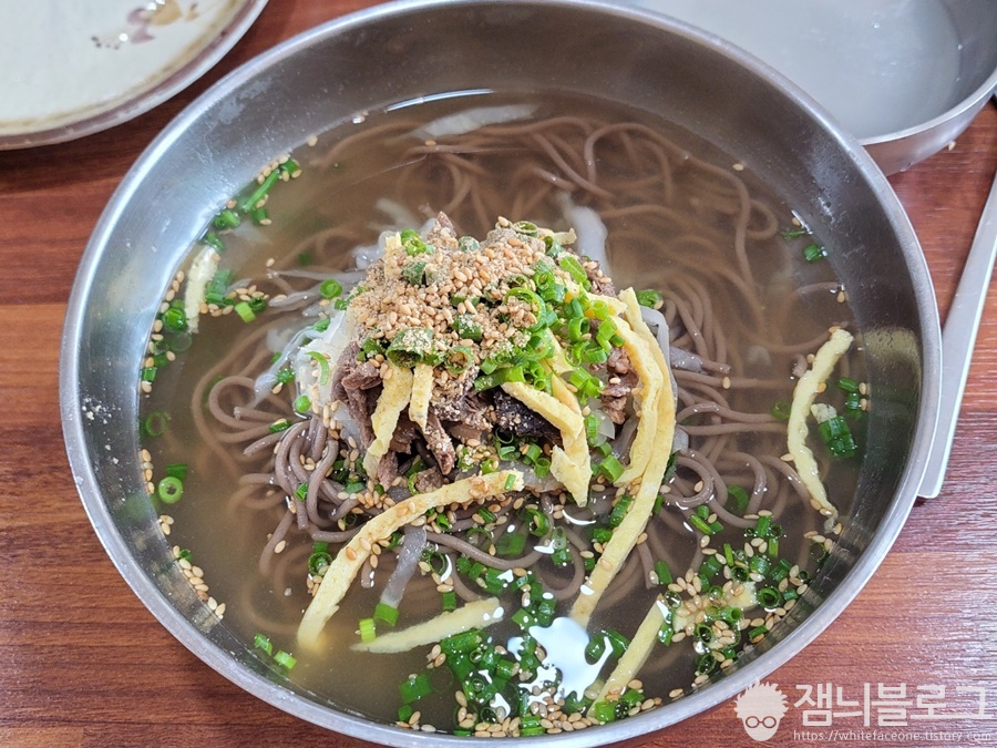약간은 낯선 느낌입니다. 소고기 육수에 면은 막국수이고 고명도 막국수 느낌으로 올라가 있습니다. 뜨끈하고 양도 적당합니다. 소고기국수라고 생각하면 되겠습니다.