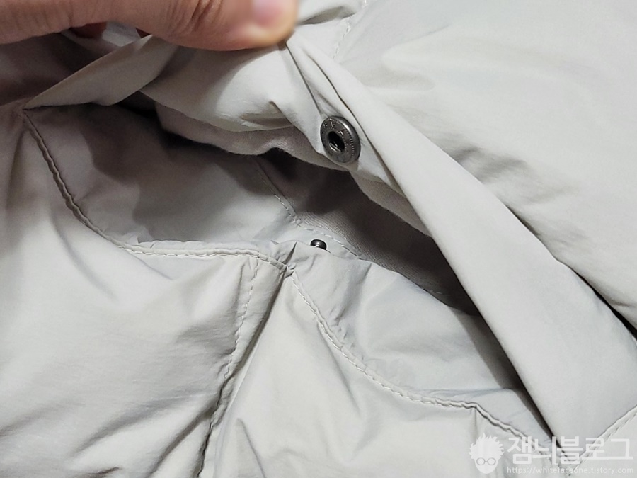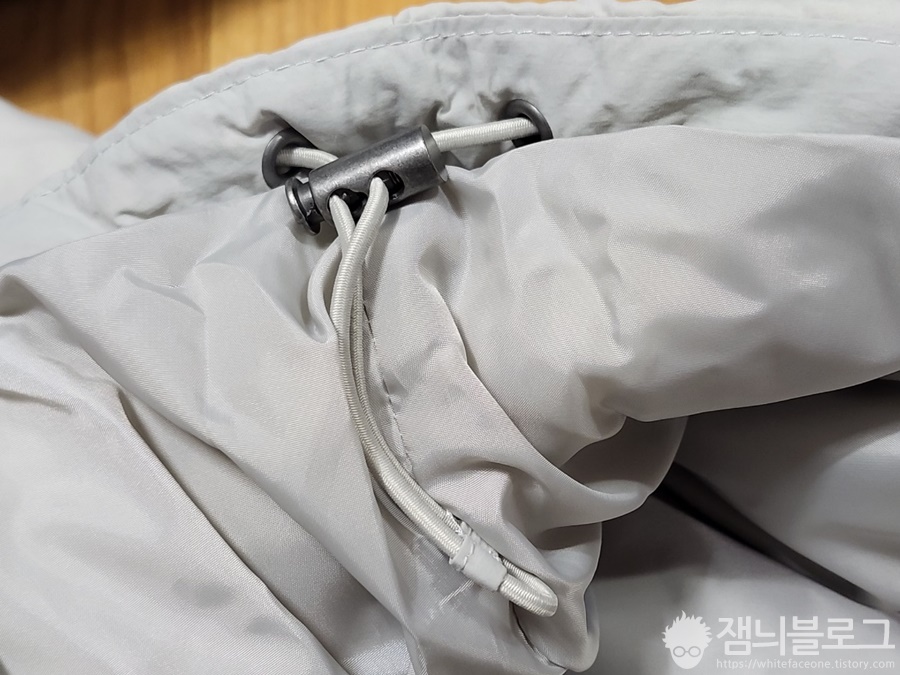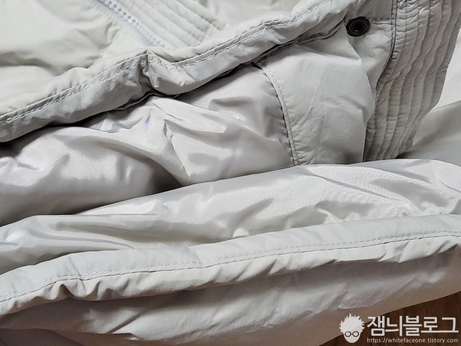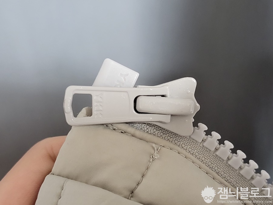 두께감은 꽤 빵빵한 편입니다. 꺼낸 지 얼마 안 되어서 좀 막대기로 두드려주면 더 두꺼워질 것으로 보입니다. 지퍼는 YKK로 확실히 기본에 충실함이 있습니다.